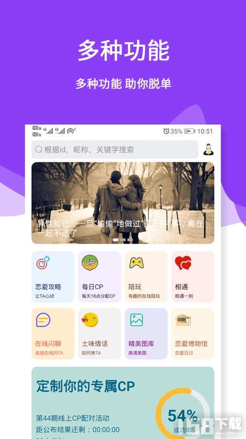 在这里,你不用担心遇到骗子,因为来这里的都是诚心交往的。而且,平台还有各类专区,比如80后90后专区、名校专区,助你快速找到兴趣相投的异性,增加脱单几率。单身的小伙伴们,快来试试吧,争取早日脱单哦!
